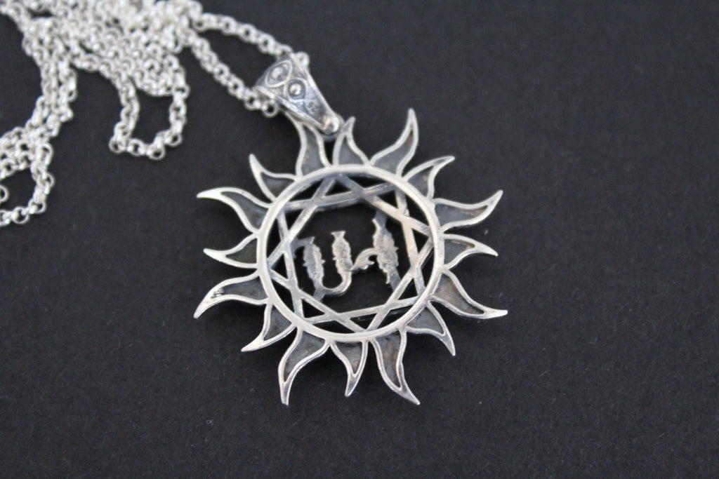 Sun pendant with word "My" in Armenian, with eternity symbol arevakhach.
