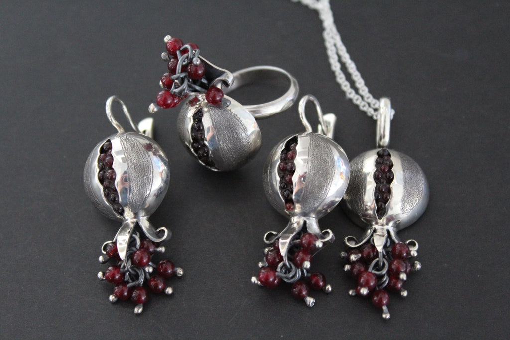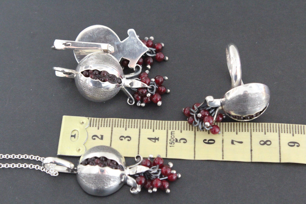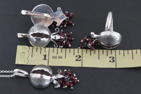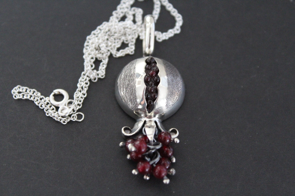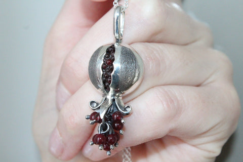 Discover the artistry and craftsmanship of our Pendant Pomegranate Sterling Silver 925 Jewelry. Adorned with a natural garnet, this unique Armenian piece is marked with 925 silver stamp, ensuring exceptional quality. Stand out with this exclusive one of a kind jewelry choice. Transform your look with our Pendant Pomegranate. Adorned with a powerful garnet gemstone, this piece brings a touch of mystic energy to any outfit. Handcrafted with traditional Armenian design, it's the perfect gift for weddings or special occasions.