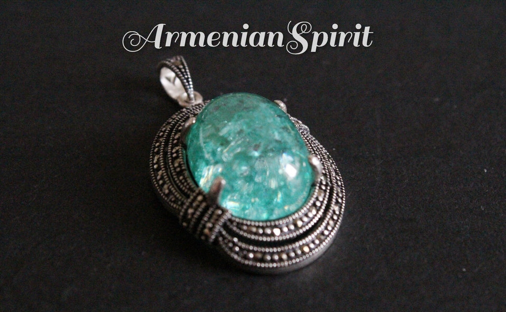 Discover the timeless beauty of Armenian Spirit jewelry. Handcrafted from high quality sterling silver, this vintage inspired large pendant feature lab created green transparent stones. Elevate any outfit or find the perfect gift at the best store for unique and stunning jewelry.