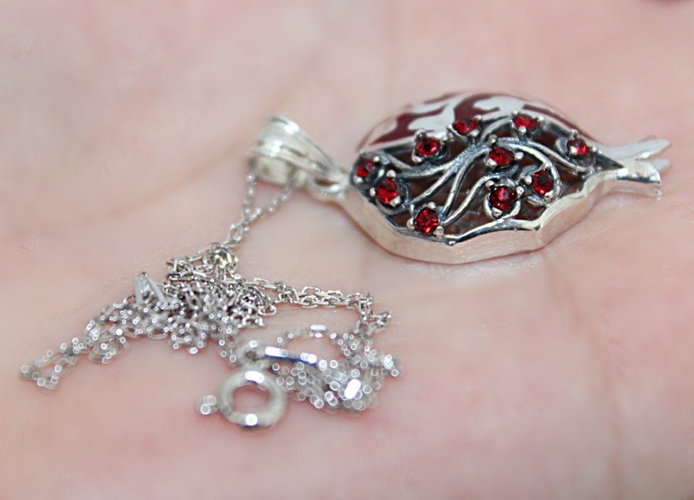 Add a touch of Armenian culture to your jewelry collection with our Persephone pendant. The pomegranate red stone charm is a nod to the mythology of this ancient civilization. Made of sterling silver 925, it's a must-have for any fall or summer jewelry ensemble. Elevate your style with this unique piece. Handcrafted by skilled artisans, this unique piece is not only a stylish accessory, but also a meaningful symbol of strength and femininity.