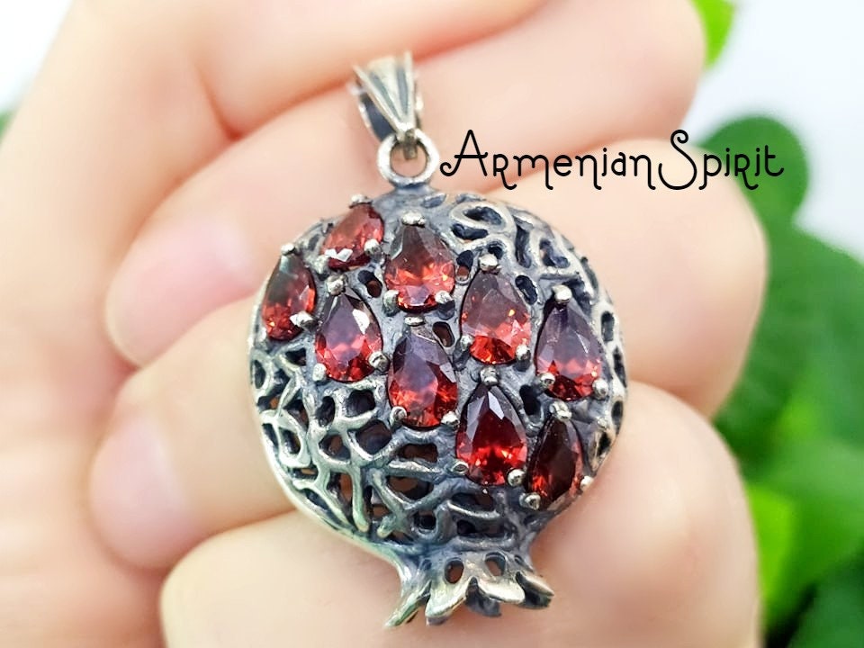 Discover the captivating mythology of Hades and Persephone with this STERLING SILVER 925 pendant. Adorned with a big red zircon pendant symbolizing the pomegranate - a key element in their story - this Armenian jewelry piece is perfect for lovers of ancient tales. Unlock the stunning benefits of this necklace today.