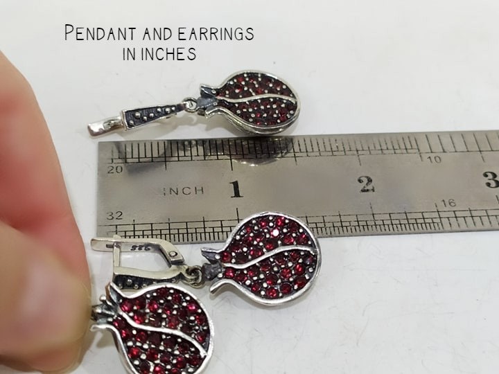 Discover the perfect gift with the Pomegranate Earrings and Pendant set. Made with quality Silver 925 and stunning red zircon stones, these pieces feature the Persephone symbol, rich in Armenian history.