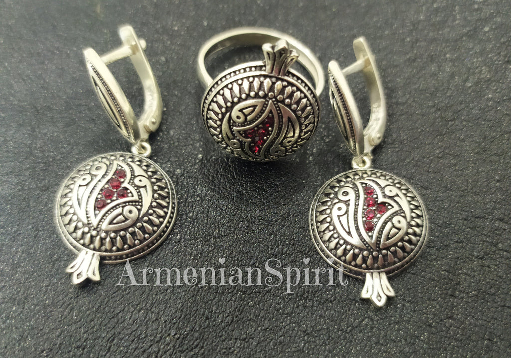 Discover the unique beauty of Armenian culture with our Pomegranate earrings. Crafted with high quality Sterling silver 925 and adorned with red zircon stones, these lightweight earrings are the perfect addition to any jewelry collection. Show your love with a meaningful gift from the best store on Etsy, Armenian Spirit.