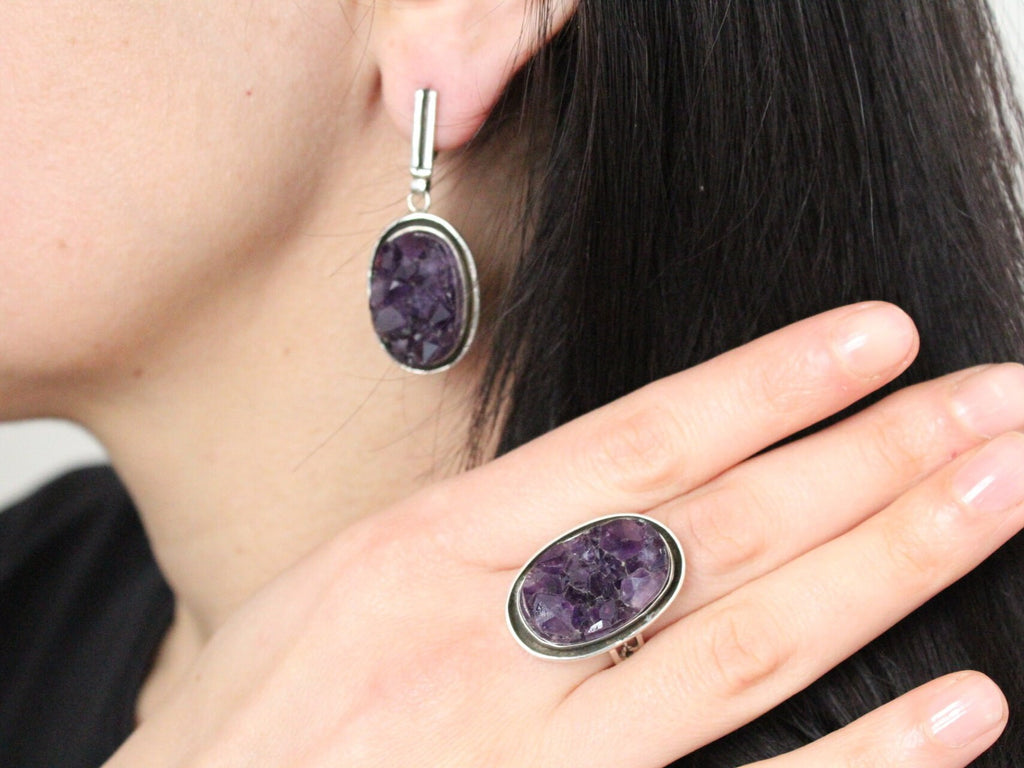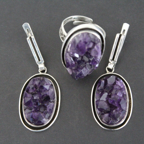 Real Amethyst ring druze in purple color made of sterling silver 925 is a really nice gift for a wife! The ring is completely handmade.
