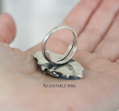 Indulge in the finest quality and beauty with our 925 sterling silver and real turquoise ring. Handcrafted with care and attention to detail by Armenian artisans, this adjustable piece adds a touch of elegance to any outfit. Enhance your style with the natural blend of light blue and black hues. Don't miss out on owning the best jewelry from our Etsy shop.