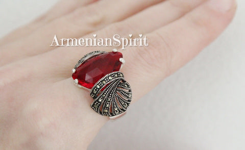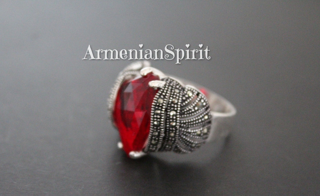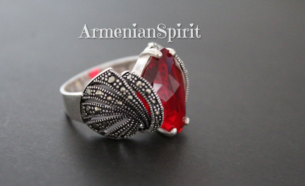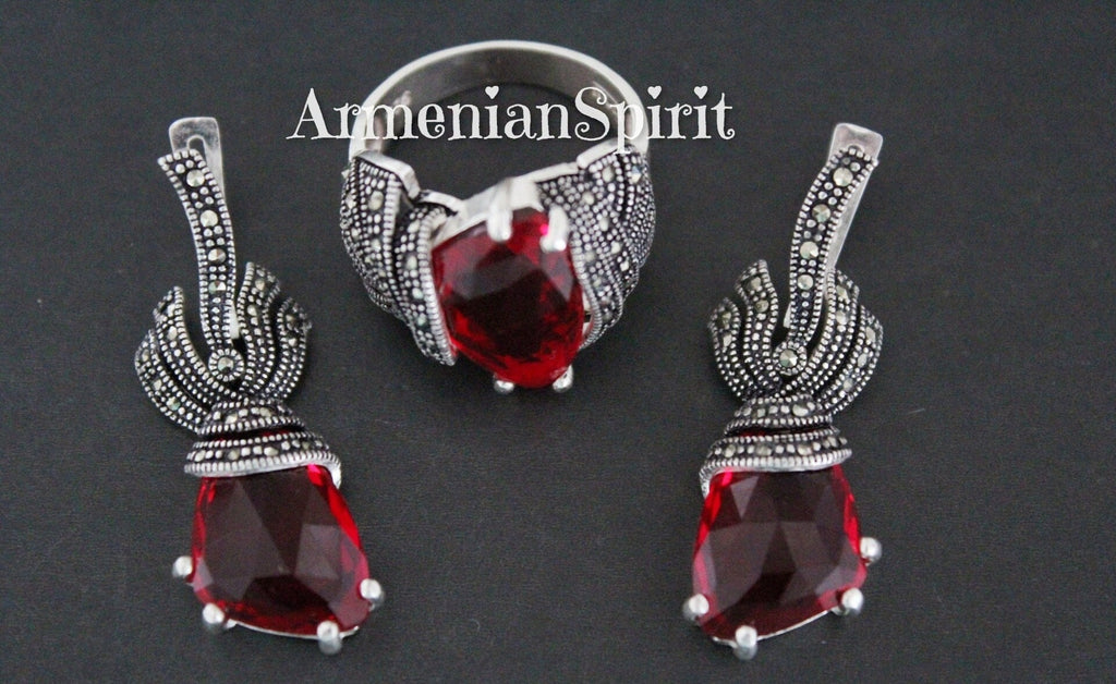 Add a touch of elegance to your wardrobe with our high-quality Red Topaz jewelry set, made with Sterling Silver 925 and adorned with Marcasite. Perfect for any occasion, these earrings and ring are sure to make a statement and elevate any outfit. Shop now on our Etsy store! Looking for the best jewelry? Look no further than Etsy! Our online store offers high quality pieces that make the perfect gifts. Enjoy free shipping worldwide and take advantage of our amazing discounts. Shop with confidence at our reliable store.
