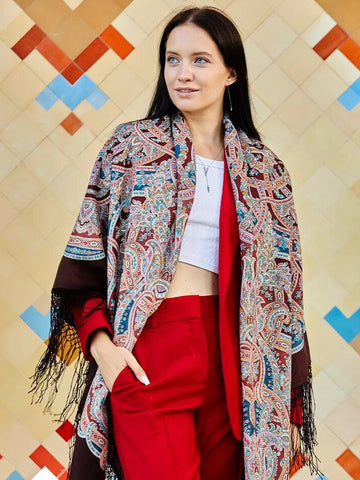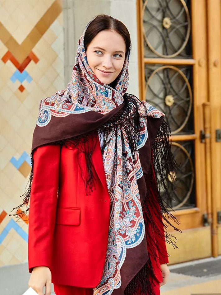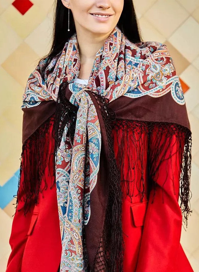 Generously sized 58" square scarf in luxurious 100% natural merino wool. This versatile wrapping shawl celebrates Slavic heritage with its timeless traditional brown shade, perfect for women who love blending cultural elegance with contemporary flair. Whether you're layering it over your shoulders on chilly mornings or styling it as a statement accessory, merino wool keeps you comfortable through every season. Soft, breathable, and endlessly adaptable, this feminine scarf is ready for whatever adventure awaits. Pure tradition, pure comfort.
