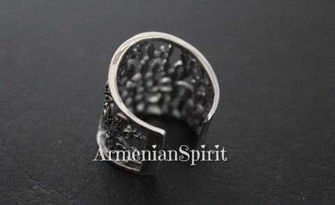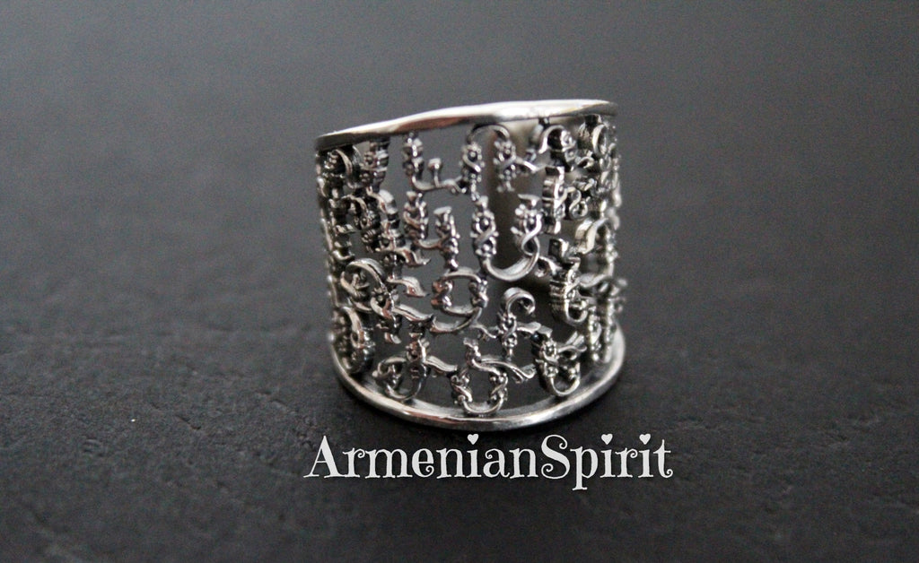Introducing our handmade, high-quality, adjustable silver ring featuring delicate Armenian alphabet. The perfect gift from our Etsy store, Armenian Spirit, known for its top-notch craftsmanship and unique designs. Experience the beauty of traditional Armenian jewelry in a modern way with this elegant piece.