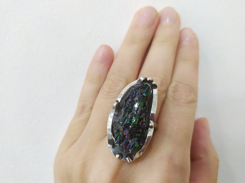 Elevate your style with our best silver jewelry on ebay. This vintage-inspired ring, crafted from 925 silver and natural carbide stones, features an adjustable band for the perfect fit. The black and navy blue druzy stones add a touch of sophistication to any outfit. Indulge in luxury with our exclusive collection.