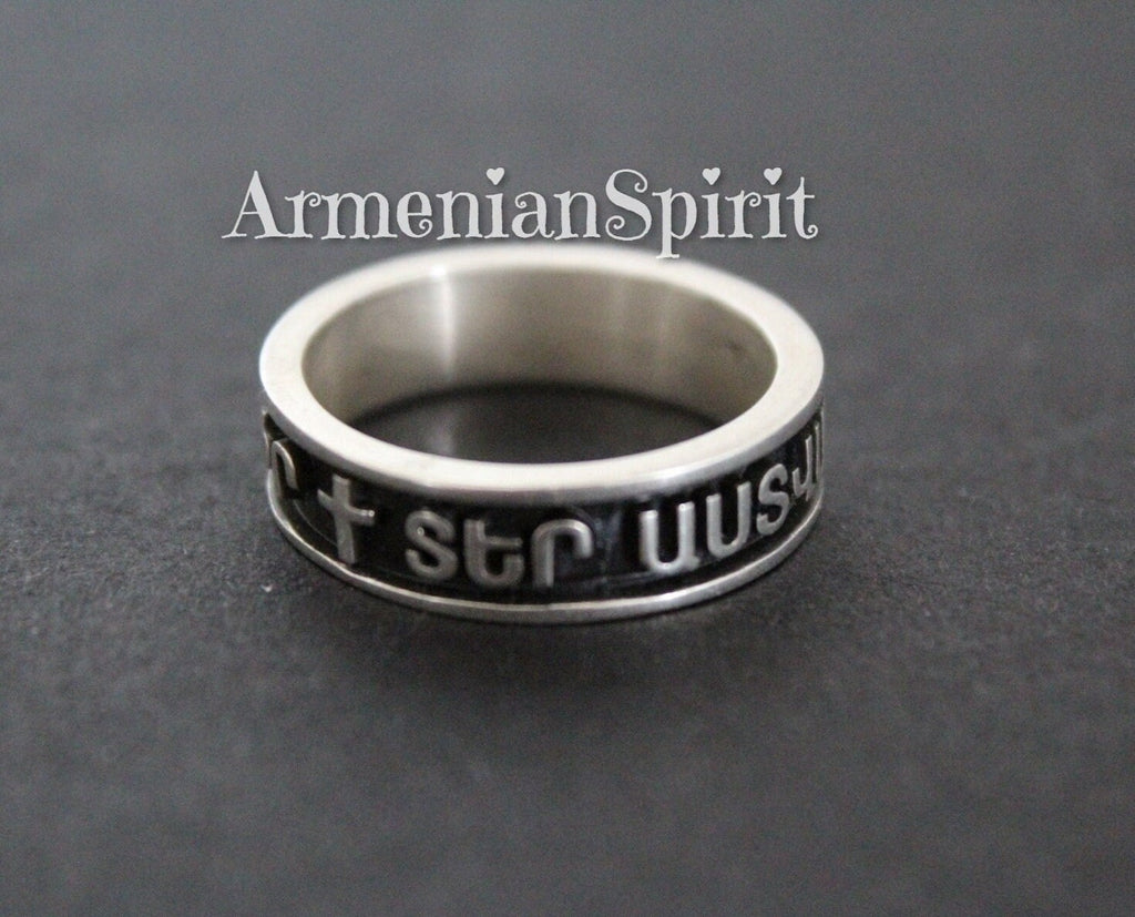 Find true Armenian Spirit with this elegant, high-quality ring for men and women. Crafted with Sterling silver 925, it features the words 'God bless and save' and a traditional cross design. Our top store offers high-quality, unique gifts with free shipping worldwide. Take advantage of our discounts and enjoy 5-star reviews from satisfied customers. Say goodbye to stressful shopping and hello to the best place to buy gifts online!