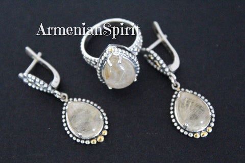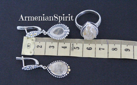 Sterling silver 925, "Venus hair" quartz natural