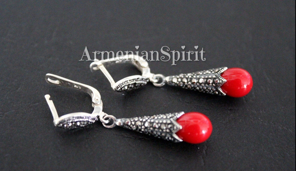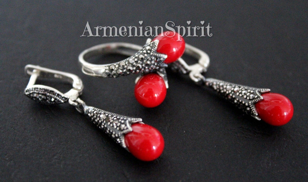Elevate your style with our black sterling silver 925 wrap design ring. Adorned with marcasite and a stunning red lab coral, this ring exudes sophistication and elegance. Upgrade your jewelry collection with this unique and timeless piece from Armenian Spirit. Experience the luxury of our high-quality sterling silver 925 jewelry. Enjoy worldwide free shipping with tracking numbers and unbeatable discounts. Our customers rave about our impeccable customer service and consider us the best store for finding unique gifts.
