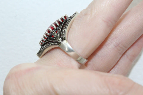 Elevate your style with our handmade Armenian Spirit ring. This modern piece features a striking red rhombus stone and sparkling Marcasite stones. Crafted with high-quality sterling silver, it's perfect for parties, cocktail events, or as a special gift. Find it on our store - the best store for unique, handcrafted jewelry. Experience the beauty without irritation with Armenian Spirit jewelry. Our stunning collection is designed for sensitive skin and comes with free worldwide shipping and tracking number. Shop now and enjoy exclusive discounts.
