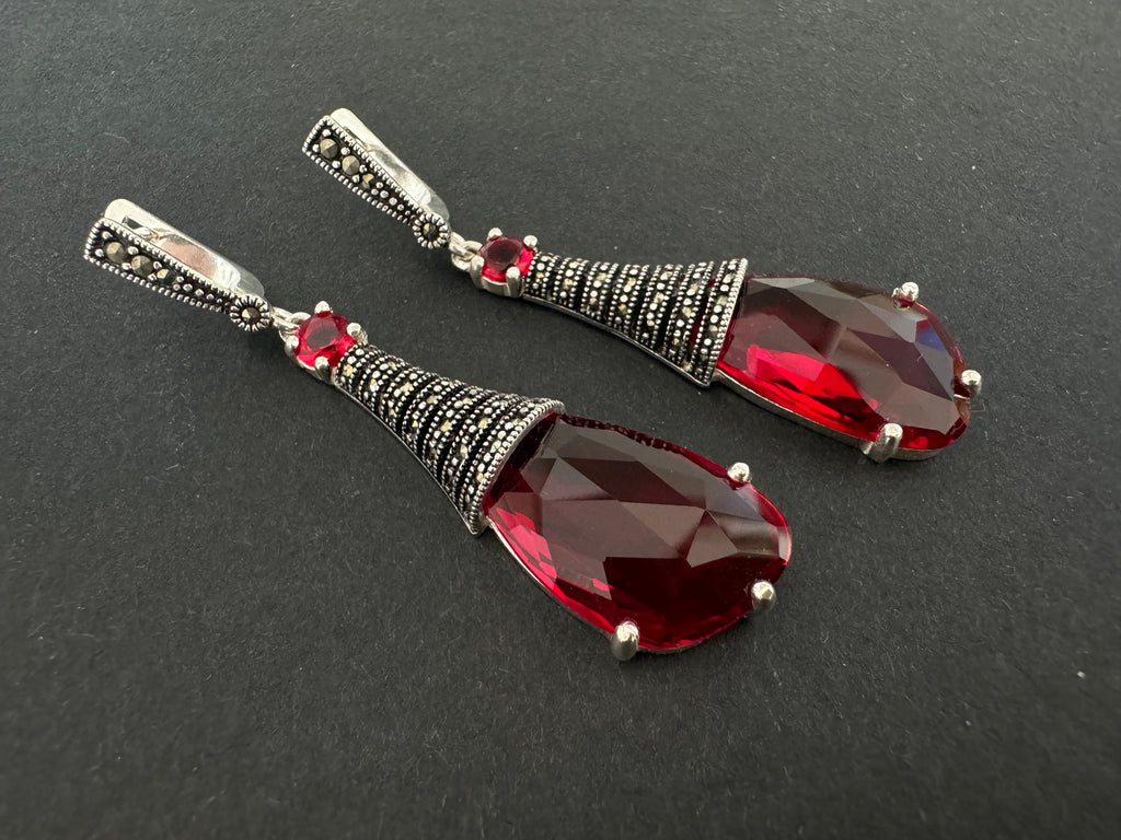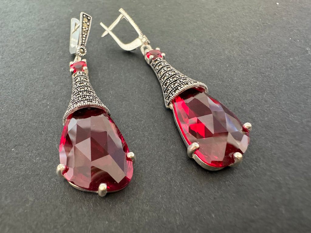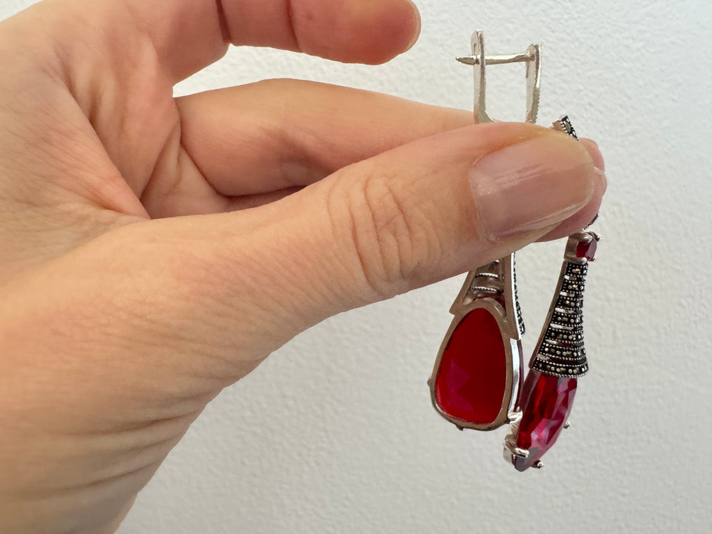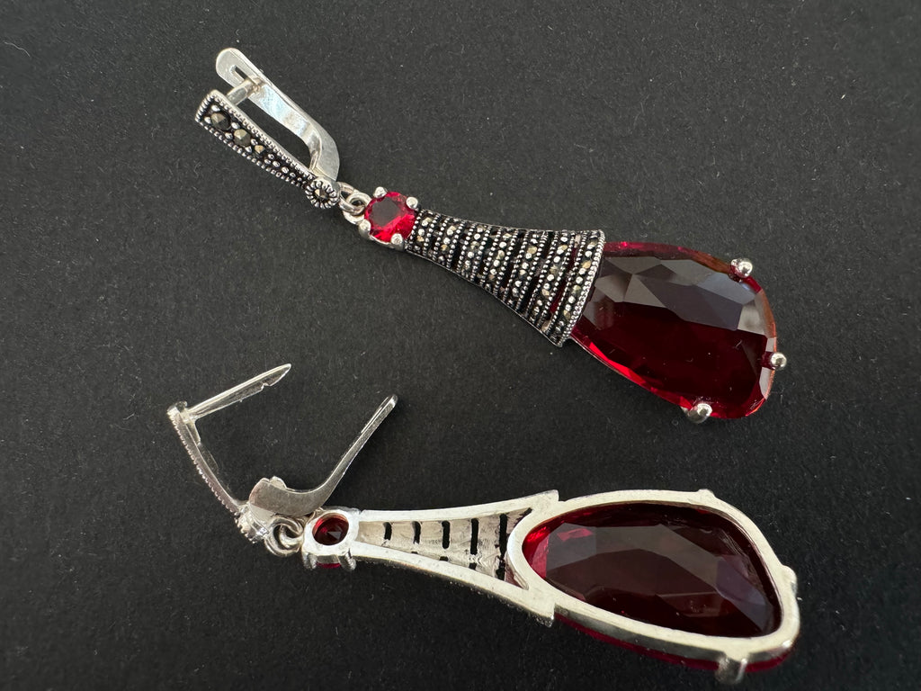 We make the jewelry of Sterling silver 925, which has very high quality. But please, note that silver always changes the color and becomes darker, because of several reasons: air humidity, using soap, skin contact and others. You can easily clean it with usual wet baking soda and wash with cold water. The jewelry will shine again!