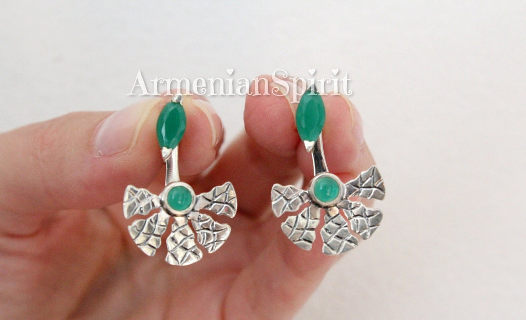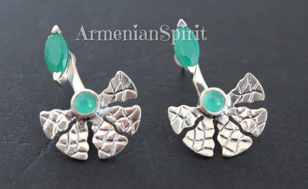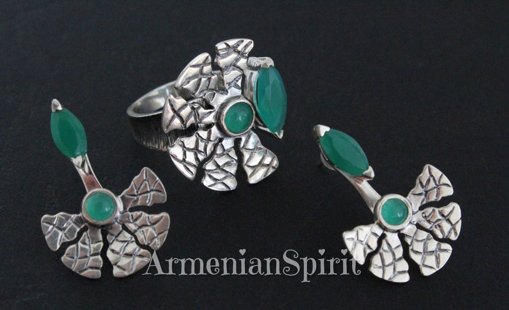 Discover the best store for unique gifts with Armenian Spirit's handcrafted jewelry. Made with high quality sterling silver 925, this ring features a natural chrysoprase stone with a delicate flower design. Elevate your style with this stunning piece. The ring is adjustable, but for sizes US 6 - US 9