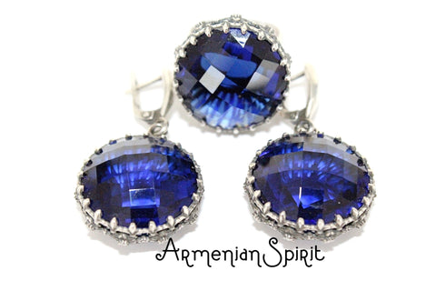 Discover elegance and sophistication with Armenian Spirit's Royal Blue Jewelry Set. Crafted with high-quality silver 925 and adorned with a navy blue zircon stone, this set includes a stunning ring and earrings. Sparkle brightly with the round floral design, perfect for any evening affair. Elevate your style with these exquisite blue jewels. Experience the perfect combination of style and comfort with our hypoallergenic jewelry. Made for sensitive skin, these pieces are a must-have for any fashion lover. Plus, enjoy free shipping worldwide when you shop with us on Etsy - one of the top-rated 5 star jewelry stores. Give your beloved woman the best gift with our affordable prices.