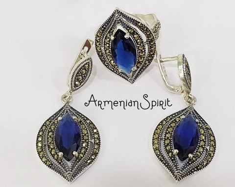 This vintage-inspired Royal blue stone Marcasite Ring is designed for women who appreciate classic elegance. Made with high-quality Silver 925 and a lab topaz, this ring exudes sophistication and timelessness. Elevate any outfit with the stunning royal blue stone, encircled by delicate Marcasite stones for added vintage flair.