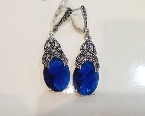 Elevate your accessories game with our best silver jewelry on Armenian Spirit. These beautifully crafted royal blue earrings feature light blue marcasite, made with high-quality sterling silver 925. Get the perfect touch of elegance and glamour with our dazzling and unique marcazite pieces. For matching ring, please, message me.
