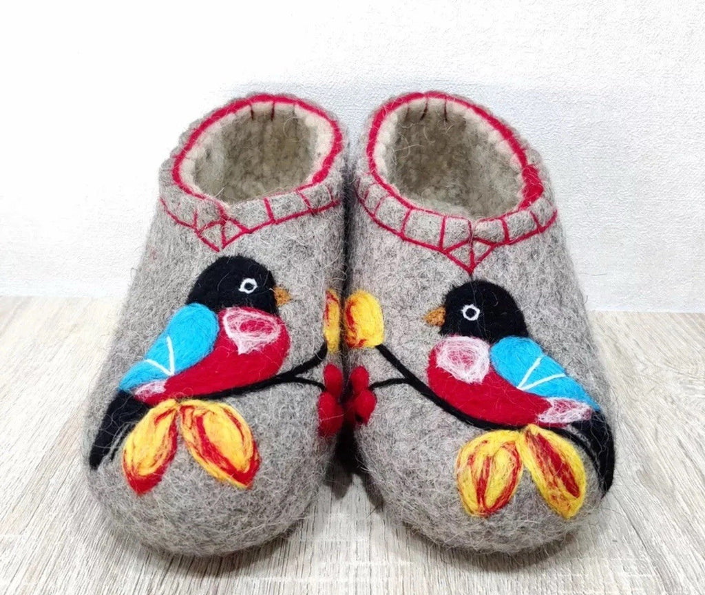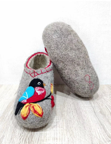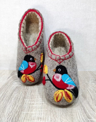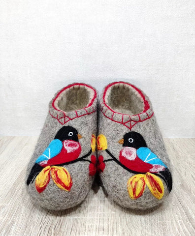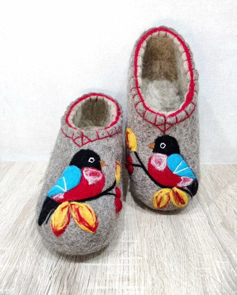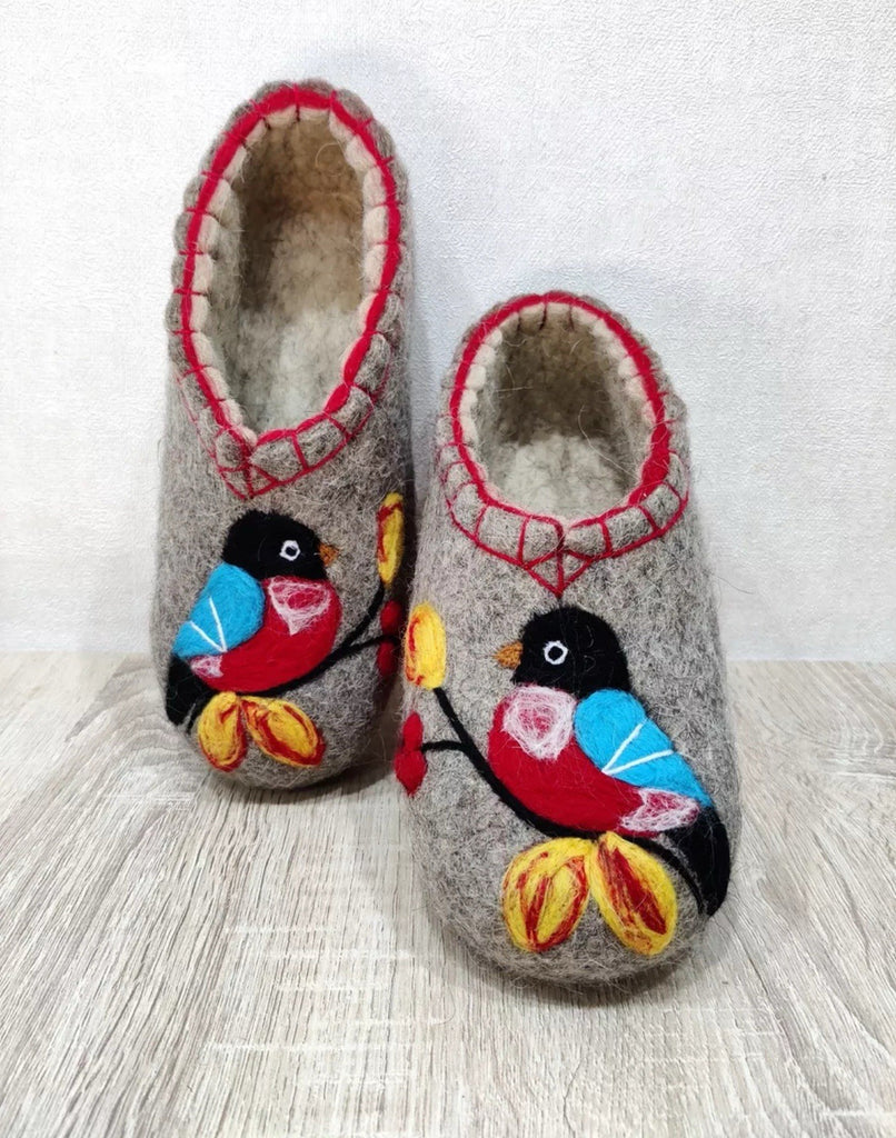 Wrap your feet in the cozy comfort of these authentic Russian gift valenki slippers from Buta Butik. Crafted with 100% wool, these durable slippers are the perfect addition to your footwear collection. The unique embroidery featuring vibrant birds adds a touch of folklore art to your home. With a beautiful bright colors these slip-ons are sure to complement any outfit.