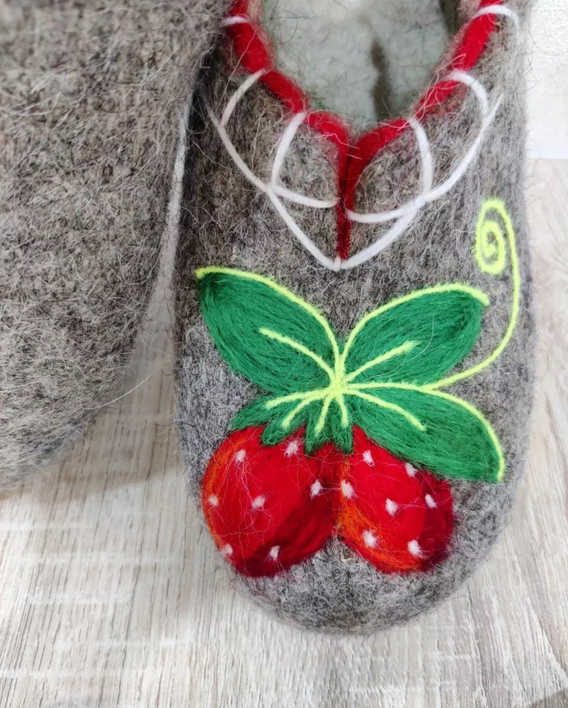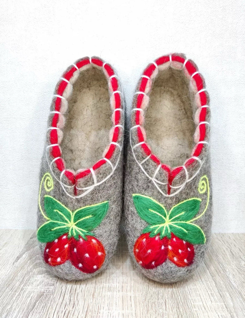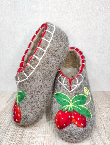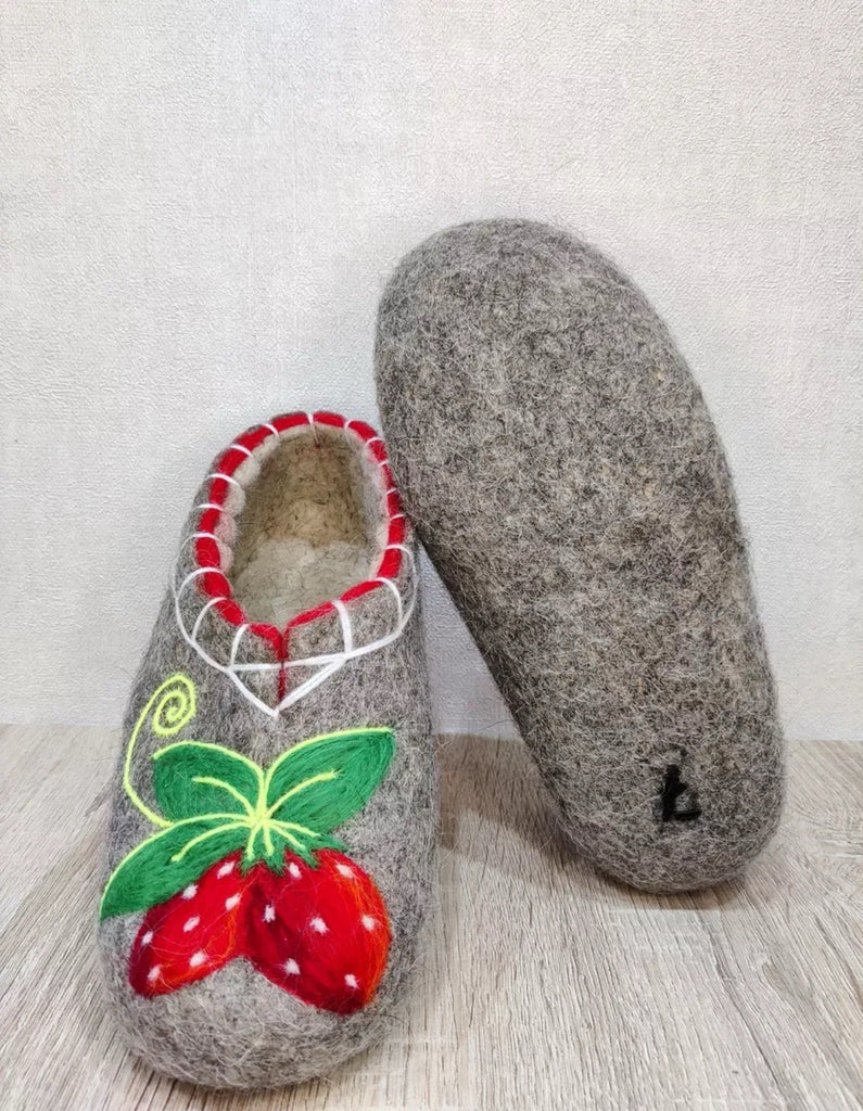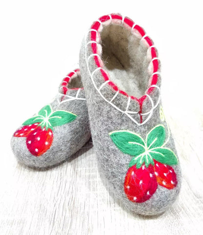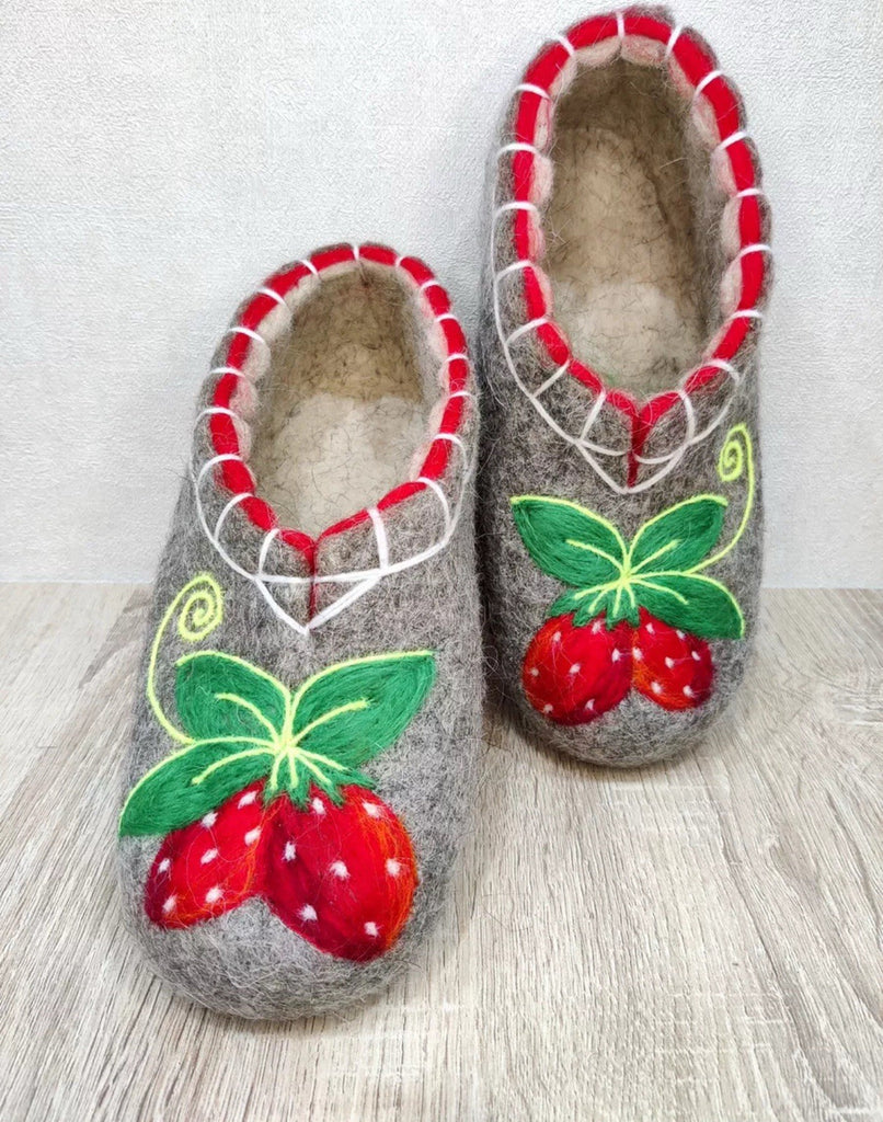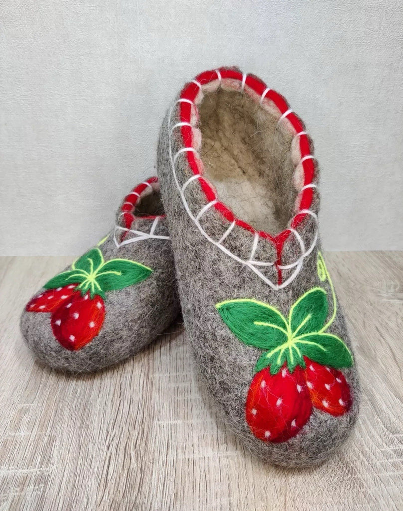 Wrap your feet in the cozy comfort of these Chuni sheep wool slippers, tailored for those who appreciate a blend of natural warmth and style. These slippers are crafted from 100% wool, featuring an embroidered flower and strawberry pattern that brings a touch of spring and summer herbal essence to your indoor attire. These slippers are perfect for coordinating with any cozy home ensemble.