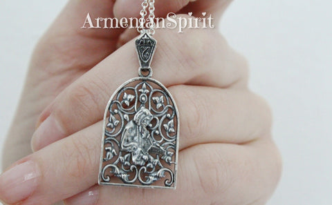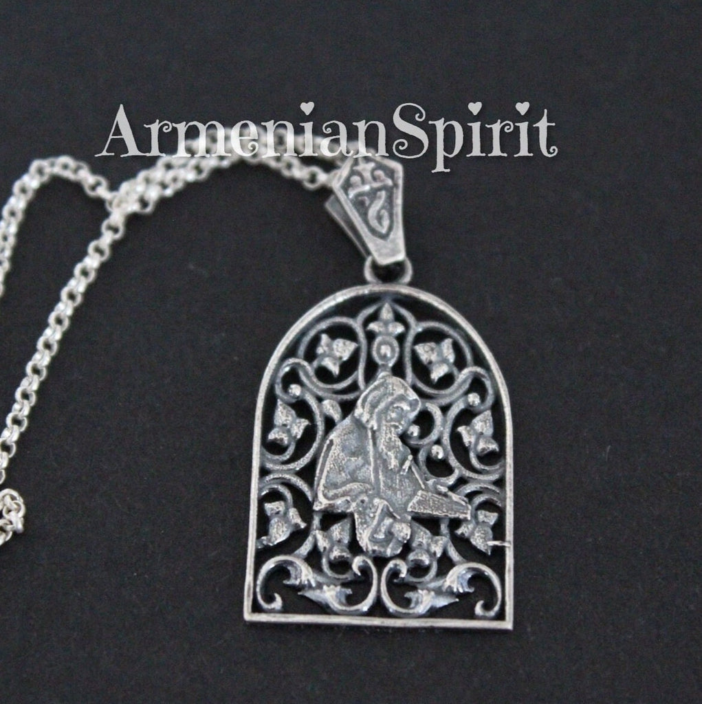 Pendant portrait Saint Grigor Narekatsi Narek with book Sterling silver 925 Armenian jewelry.