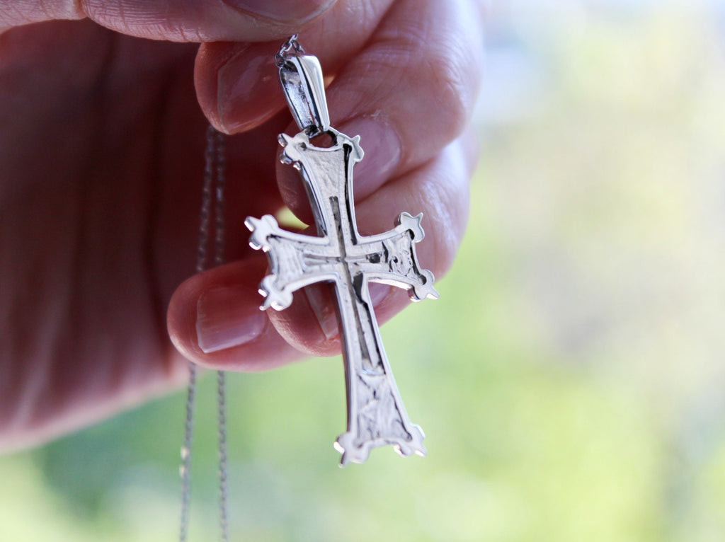 Do you need an Armenian cross for baptism? Check out this 925 sterling silver black cross on sale that is suitable for both kids and adults. Such crosses are a symbol of Christianity and are suitable not only for Armenians, but also for all branches of the Christian Church: Orthodox, Apostolic and Catholic. The cross is made of 925 silver precious metal and covered with black enamel on the edges.