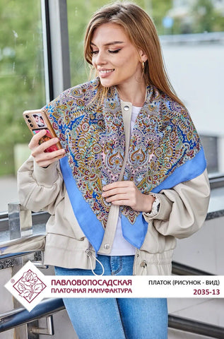 We offer original scarves from the renowned Russian brand Pavlovo Posad, known worldwide since the mid-19th century for its rich heritage and exceptional craftsmanship.