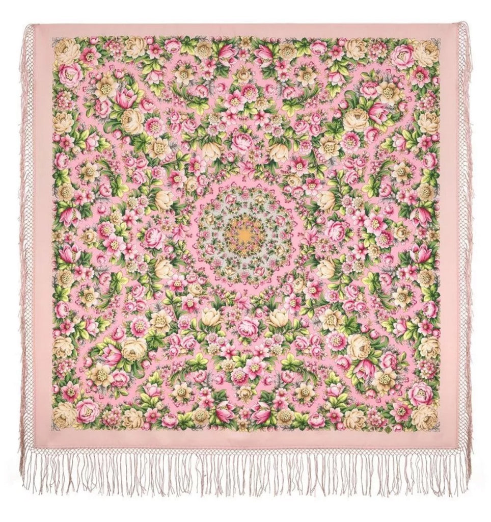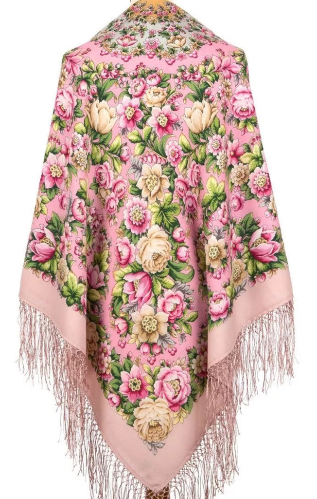 This 53'' square scarf by Pavlovo Posad is made of 100% Merino wool in a vibrant pink and green color palette. The design features a pattern of pink and pale yellow flowers, green leaves, and fringe accents, inspired by nature. This versatile accessory can be styled as a shawl, neck warmer, dupatta, or hijab, making it suitable for various seasons like winter, summer, fall, and spring. Made in the Russian Federation, this stole is meant for women who appreciate high-quality, floral-themed scarves. This merino wool scarf is the perfect gift for any special occasion, including Mother's Day, birthdays, and anniversaries. Made from high-quality materials, it is a thoughtful and versatile present that is sure to be appreciated. Show your loved ones how much you care with this luxurious and stylish scarf.
