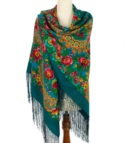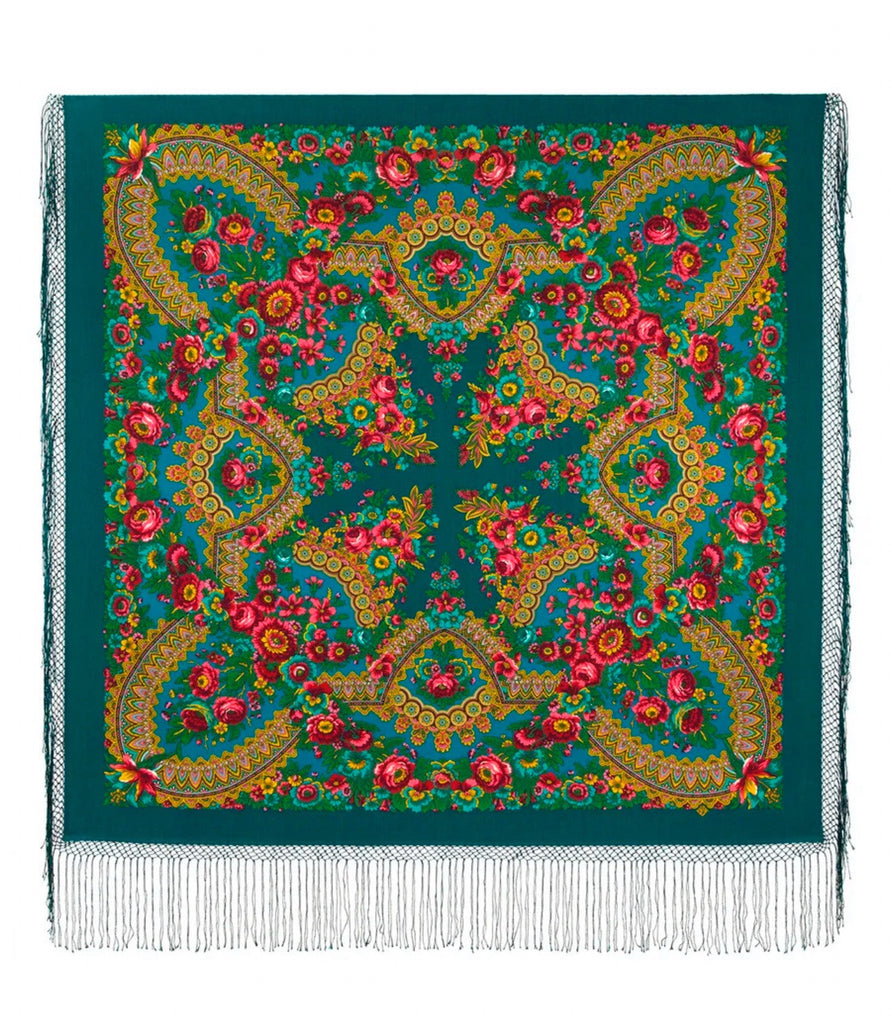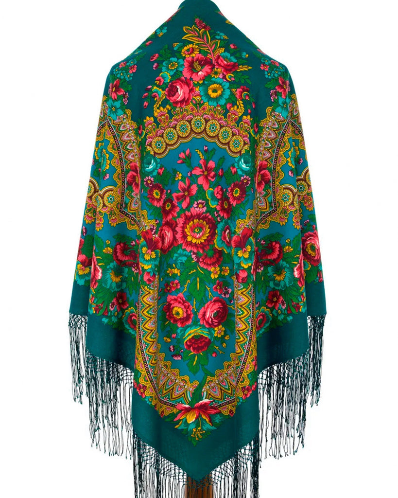 Wrap yourself in the warmth and elegance of this Pavlovo Posad Scarf, featuring a vibrant blend of green, red, and sea green hues. This 58'' square scarf is crafted from 100% merino wool, promising both comfort and durability. Its soft, floral pattern adorned with leaves and flowers offers a touch of nature-inspired charm to any ensemble.