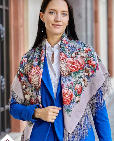 Elevate your wardrobe with this refined 35'' square merino wool scarf, a sophisticated choice for every season. Ideal for not warm spring mornings, chilly summer transitions, windy fall strolls, and cold winter gatherings. This vintage inspired piece, available at our online shop, showcases an elegant palette of beige, pink, and green. Crafted from 100% pure merino wool, it offers warm and cozy sophistication without compromise—non-prickles and no irritations ensure comfort against even the most sensitive skin. Hypoallergenic and thoughtfully designed, it's the perfect gift idea for those who appreciate timeless style and quality craftsmanship.