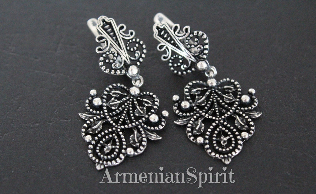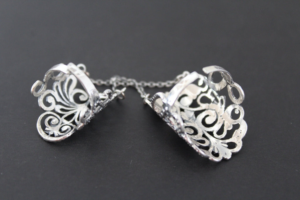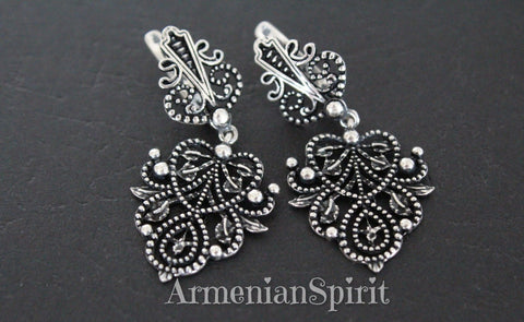 Earrings and ring for every day with beautiful herbal pattern in 925 sterling silver is the best gift for a young girl for her birthday or Christmas. Earrings will be a great addition to any outfit: office or casual. The ring is very unusual, it is double and connected by chains. Both the top and bottom are adjustable and can be made to your size. But please note that it only fits large sizes 9-10. Pay with Paypal, Mastercard or Visa card.