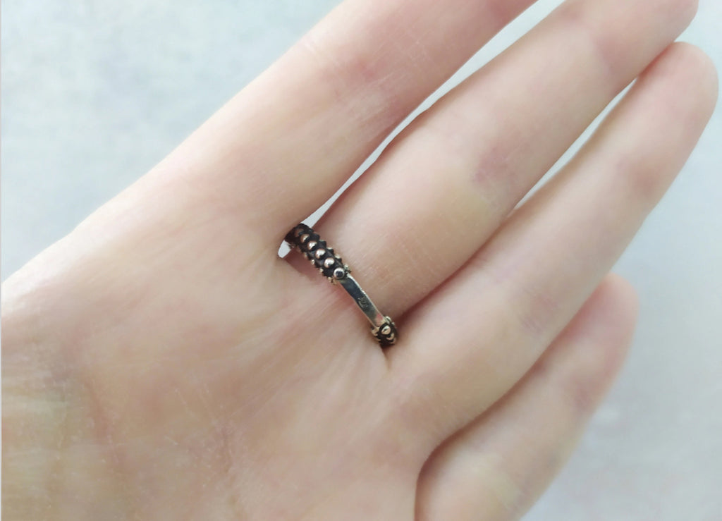 We make the jewelry of Sterling silver 925, which has very high quality. But please, note that silver always changes the color and becomes darker, because of several reasons: air humidity, using soap, skin contact and others. You can easily clean it with usual wet baking soda and wash with cold water. The jewelry will shine again!