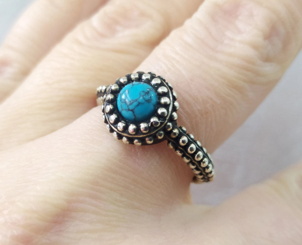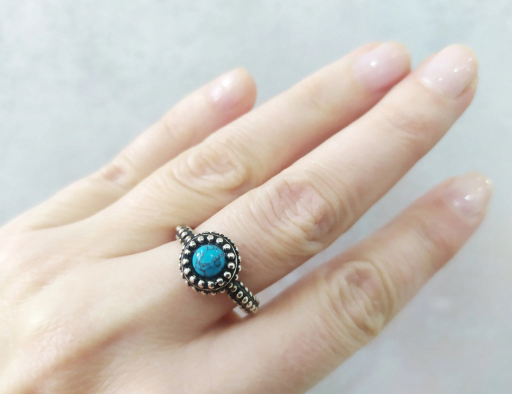 Material: Sterling silver 925, natural pressed turquoise gemstone
