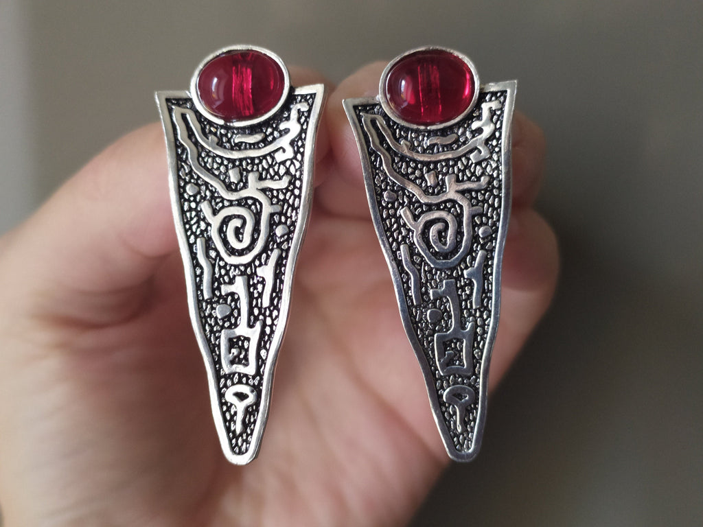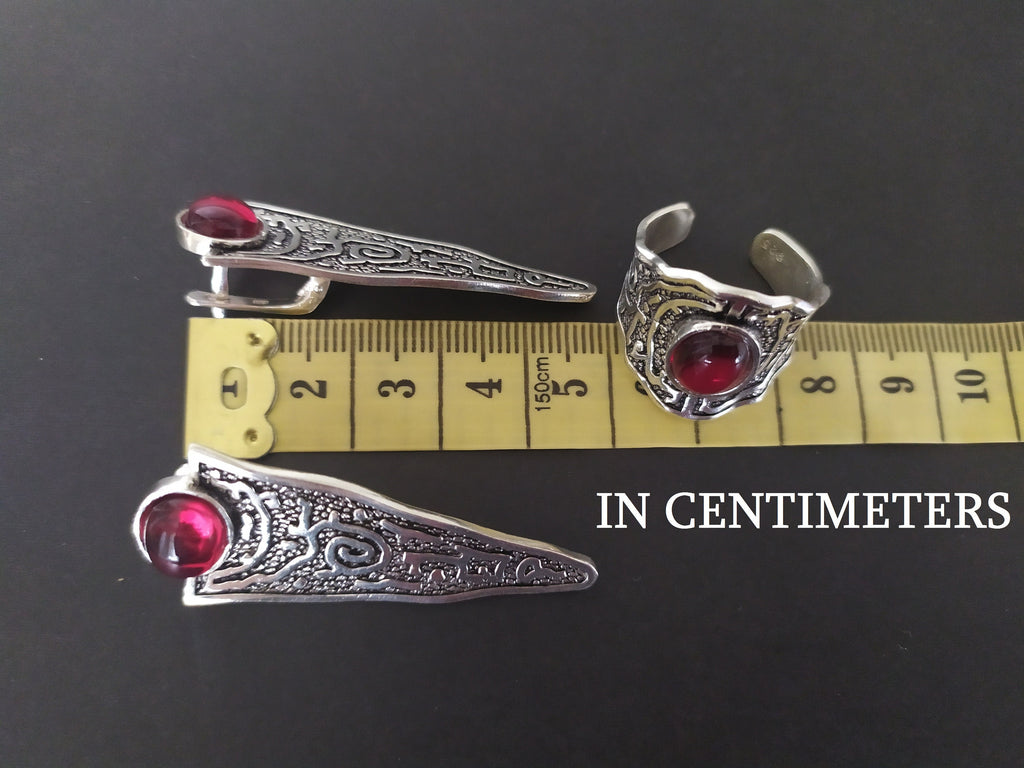 Discover beautifully crafted jewelry with Armenian Spirit. This set includes silver 925 rings and long earrings adorned with red lab garnet. Handmade with traditional ornaments and folk designs, this high-quality collection is the perfect gift for any occasion. Elevate your style with Etsy's best store for unique jewelry. Shop for high-quality and hypoallergenic jewelry at our top-rated online store. Our sterling silver 925 pieces are free from irritations, making them perfect for those with sensitive skin. Enjoy discounts and free shipping with tracking when you purchase online. Upgrade your style today with confidence.