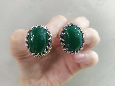 Elevate your style with this short earrings and ring set. Made with sterling silver and featuring a beautiful green jade cabochon oval stone, this vintage style set is the perfect addition to your jewelry collection. With its unique design and high-quality materials, this set will make you stand out in the best way. Discover the best jewelry on Armenian Spirit! Browse our collection of beautifully crafted Armenian silver 925 pieces, perfect for any occasion. Support local artisans and elevate your style with unique and high-quality jewelry. Shop now and add a touch of elegance to your wardrobe.