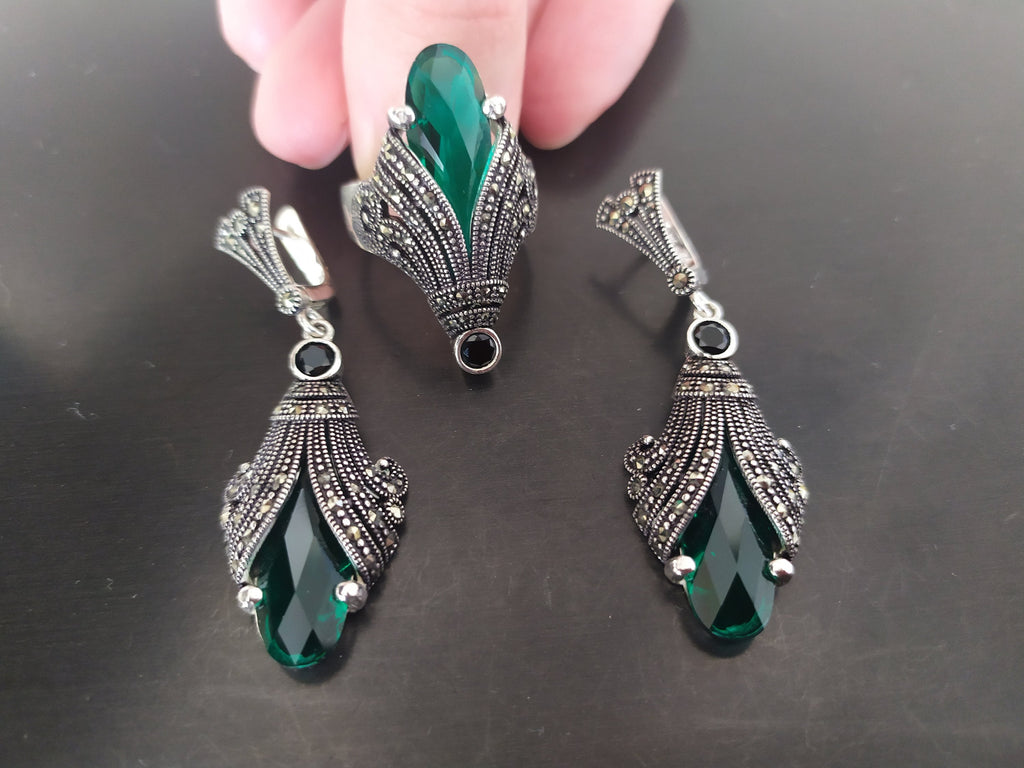 Discover the timeless elegance of our Silver 925 Armenian jewelry earrings. Adorned with shimmering marcasite and luxurious black onyx, these earrings embody Tudor Victorian style. Handcrafted by skilled artisans and offered by the best Armenian jewelry store, they make a sophisticated addition to any collection. Made with a variety of vibrant stones (choose from red, blue, black, brown, green, pink, and more), these earrings are the perfect eye-catching accessory for any occasion. Buy now, express yourself in style!
