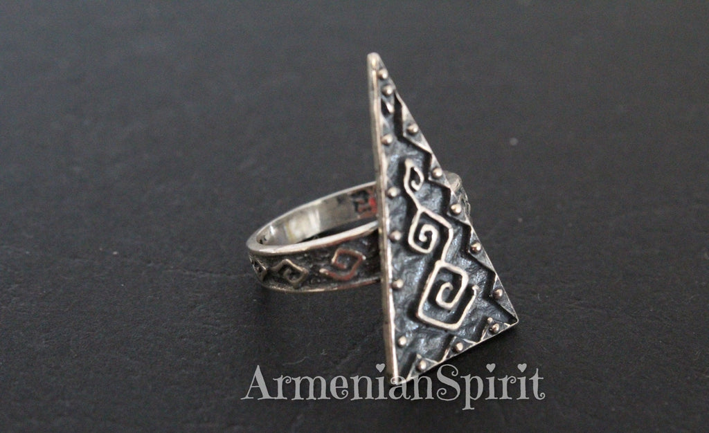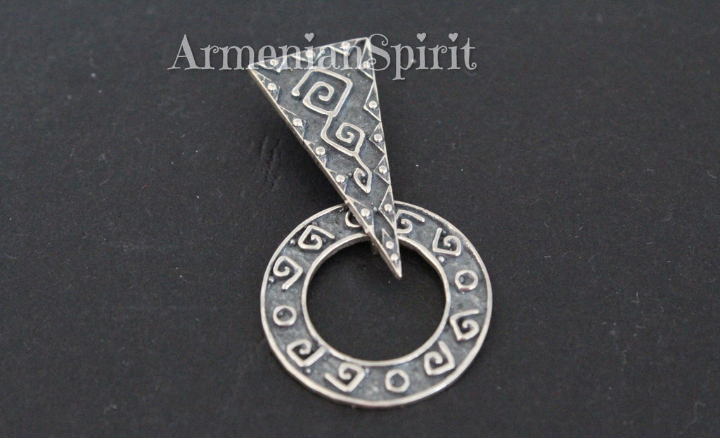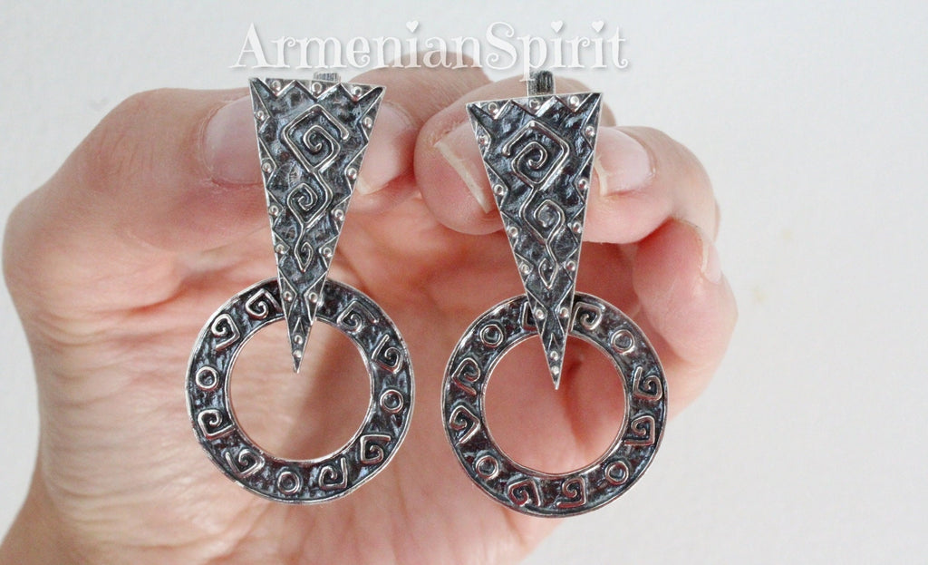 Our top-rated store offers 5-star reviews and only the best quality jewelry. Add a touch of modern and ethnic charm to your wardrobe with our Armenian round earrings featuring intricate triangle details. These earrings are not only traditional and fashionable, but also stamped with 925 for sensitive skin. Elevate your style while staying comfortable.