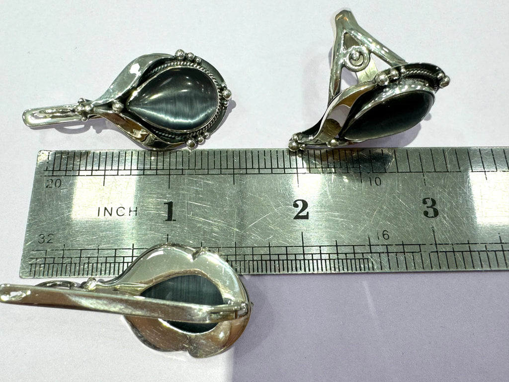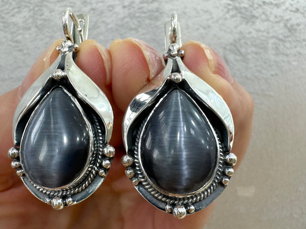 Crafted from stunning silver 925, these earrings feature a unique and beautiful drop-shaped gray tiger's eye stone. With a vintage-inspired design, they make the perfect addition to any jewelry collection. Elevate your style with these exquisite earrings.