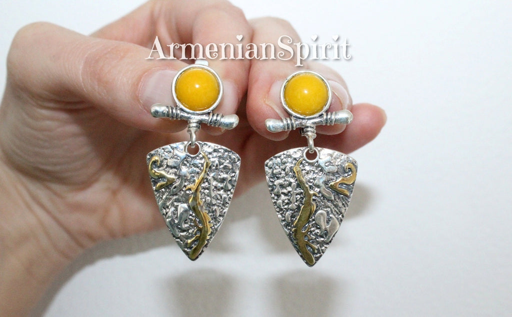 Elevate your style with our high-quality Leaf Earrings, handcrafted by artisans in Armenia. Made of sterling silver 925 with gold plated accents and a yellow jadeite gemstone, these earrings will add a touch of elegance to any outfit. Shop now on Etsy for unique, handmade jewelry. Looking for the perfect piece of jewelry? Look no further than Etsy Best Jewelry! With a wide selection of high-quality pieces, free shipping worldwide, and amazing discounts, it's the top store for gifts. Trust us, this reliable store has everything you need to make someone's day.