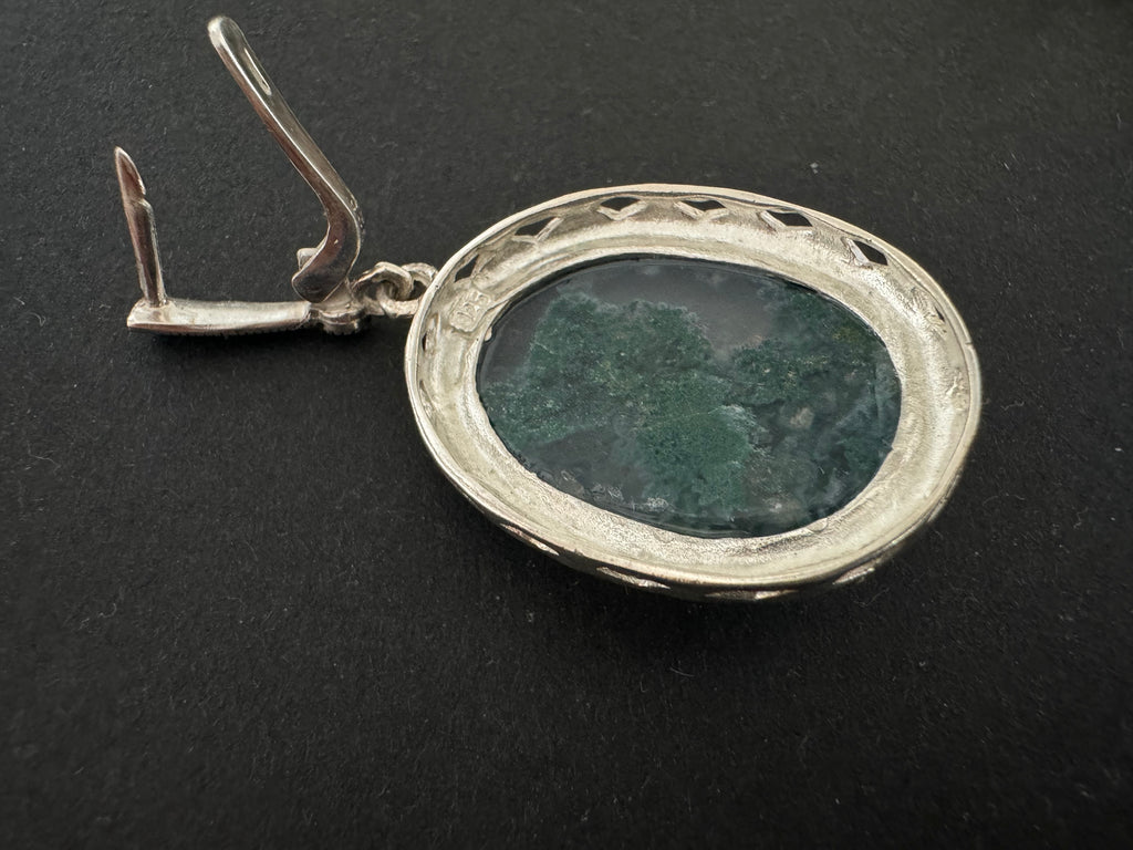 These Silver 925 ring and earrings feature green moss agate, making them unique and one of a kind. The floral design and marcasite accents adds a touch of elegance, perfect for any occasion. Made with high-quality silver, these earrings and ring are not only beautiful but also durable. Upgrade your jewelry collection with this stunning one of a kind set.