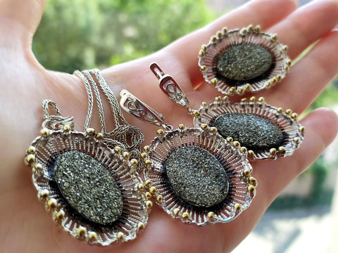 Elevate your style with our Armenian etsy store's high-quality silver earrings. Adorned with golden pirit and natural gemstones, these Big Flower earrings are expertly crafted and gold-plated for a lasting sparkle. Experience luxury and sophistication in one stunning piece of jewelry.