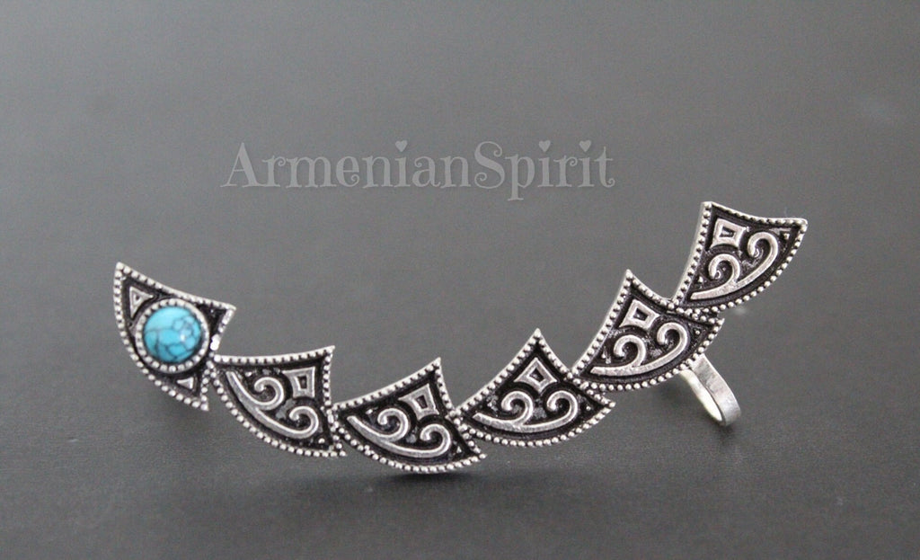 Add a touch of elegance to your look with these high quality sterling silver925 earrings from our Etsy shop. With a unique design, the silver cuff earring is perfect for the left ear, while the pair of tiny studs lets you choose to express your style with a touch of Armenian jewelry ethnic charm.