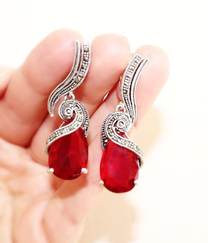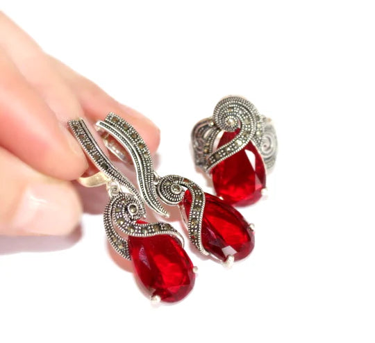 Add a touch of luxury to your wedding or any special occasion with our high-quality sterling silver925 jewelry set. This set includes beautiful silver marcasite earrings, Armenian-style red crystal dangle drop earrings, and a matching silver 925 necklace. Elevate your look and feel confident with our stunning Etsy shop jewelry. Find the perfect jewelry for any occasion at Etsy Best Jewelry. Shop online for high quality pieces and enjoy free shipping worldwide. With top-rated customer reviews and frequent discounts, our reliable store is the go-to destination for all your gift-giving needs.