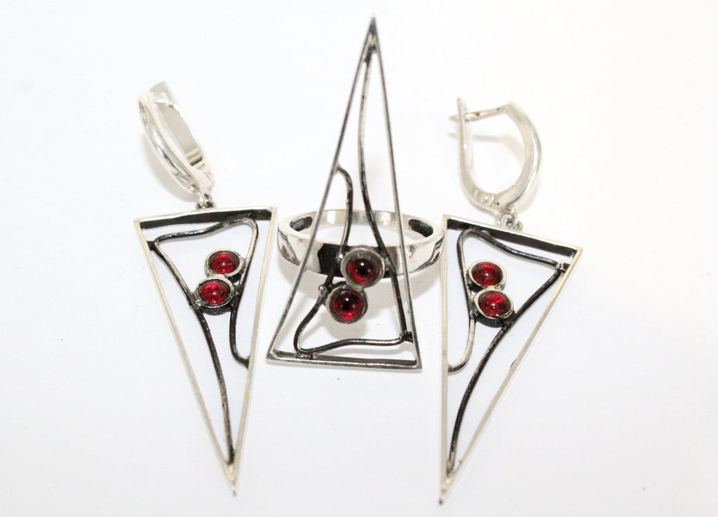 Add a touch of modern elegance to your wardrobe with our handmade Armenian sterling silver earrings. The avant-garde design features red stones, making them the perfect statement piece for any occasion. Elevate your style with the best silver jewelry on ebay. Armenian Spirit's jewelry store on ebay offers truly unique and handcrafted pieces, perfect for those who dare to stand out. These high-quality, hypoallergenic silver pieces are stamped with 925, ensuring their quality. And with free worldwide shipping and exclusive discounts, why not take a risk and add some boldness to your jewelry collection?