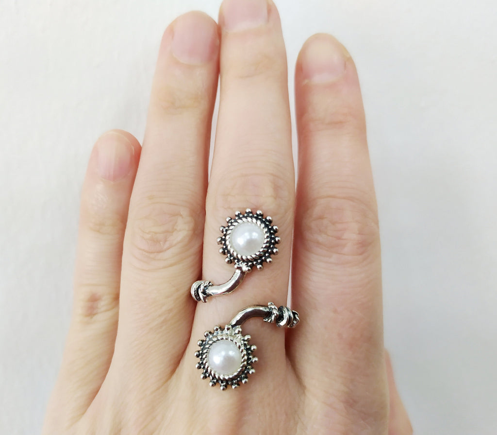 Introducing our beautifully-crafted Silver Adjustable Ring, adorned with a lustrous Lab Pearl. Handmade by skilled Armenian artisans, this bohemian-inspired ring is perfect for weddings and engagements. Upgrade your jewelry collection with our unique piece from our Armenian Spirit store.