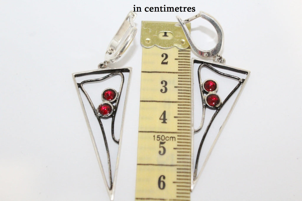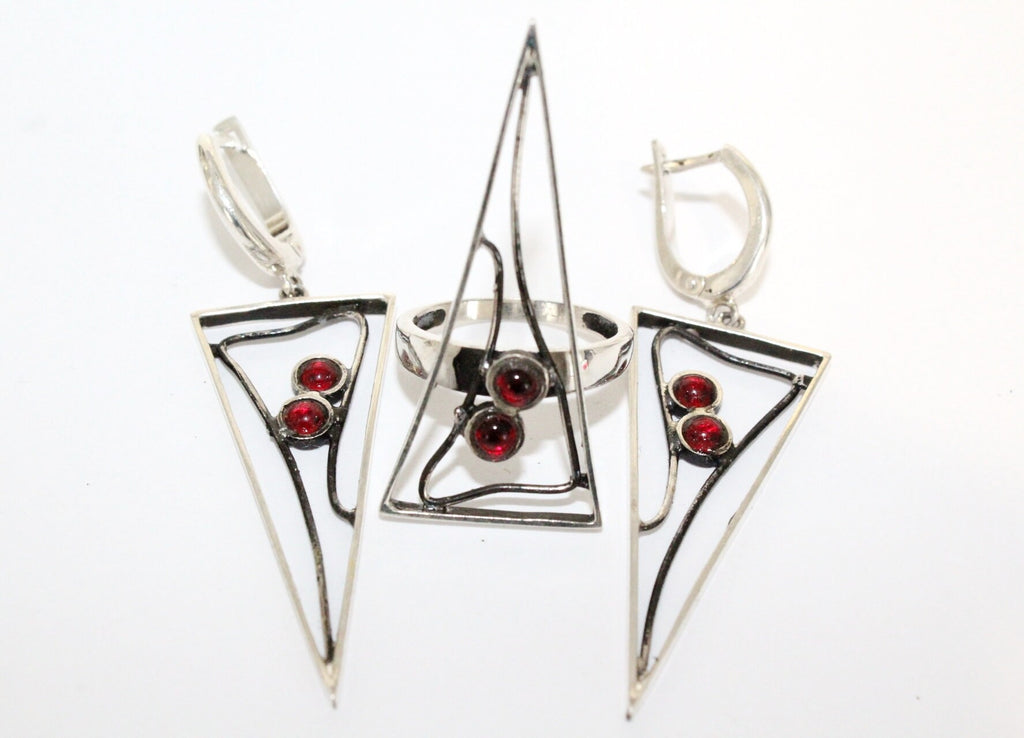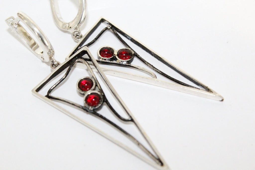 Elevate your style with our Sterling Silver pointed triangle Ring, featuring stunning red stones. Handcrafted by expert artisans in Armenia, this modern, avant-garde piece is made from 925 silver and is the perfect addition to your jewelry collection. Experience the quality and uniqueness of our handmade store.