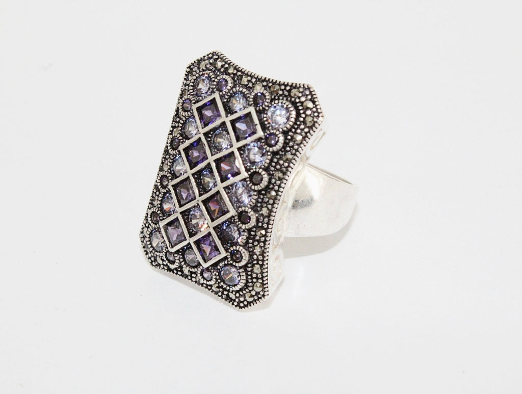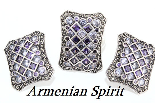This silver set features unique violet jewelry, handmade in Armenia. With purple and white zircon stones, the rectangle shape adds a touch of sparkle, making it the perfect gift for any chess lover. Upgrade your jewelry collection with this unusual and eye-catching piece. Order your favorite pieces from our top-rated online stores and receive them with love. Enjoy discounts, a convenient tracking number, and a wide selection of handmade silver jewelry. Shop online now and discover the beauty of owning unique and quality pieces.