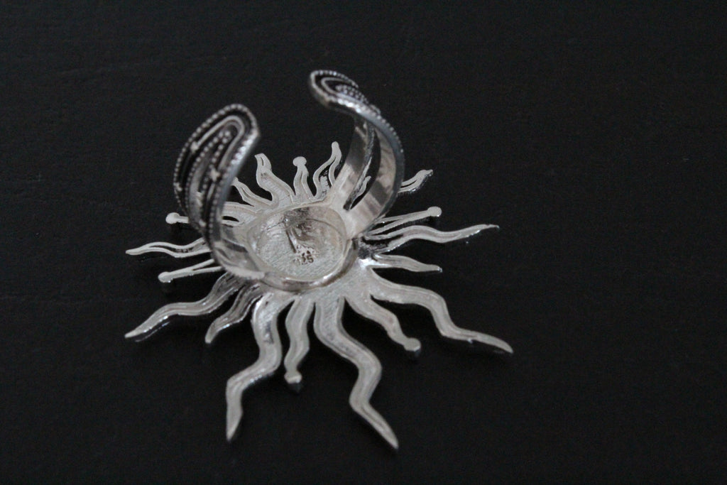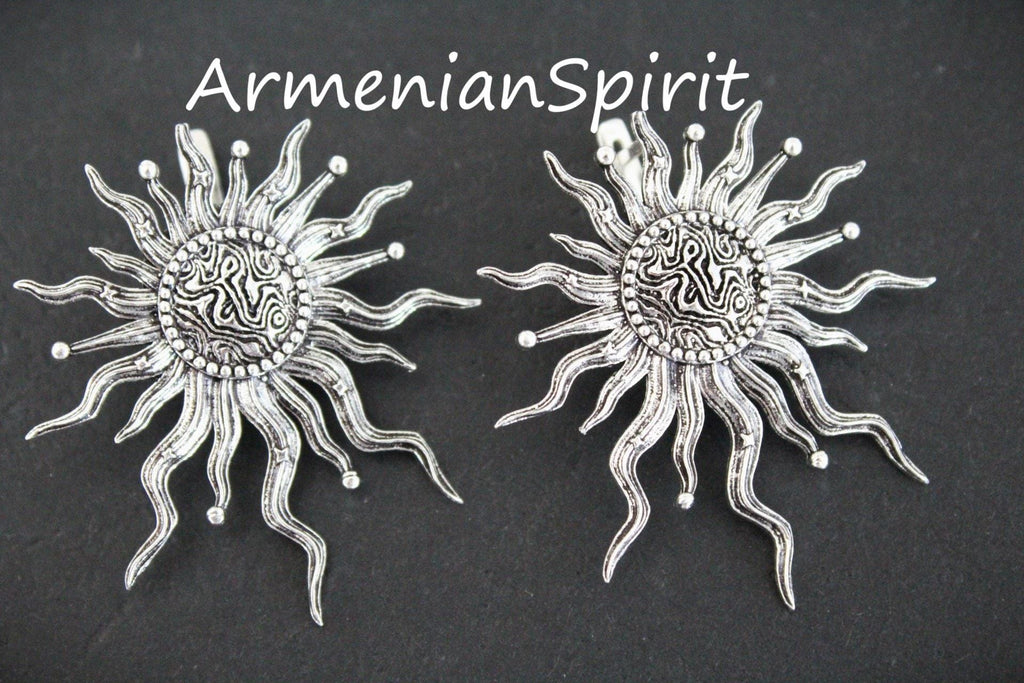 Add a touch of elegance and history to your jewelry collection with our high-quality sterling silver 925 sun jewelry set from Armenia. Featuring beautiful earrings with an English lock and a statement ring boasting long rays, this ethnic-inspired set is reminiscent of mythical stories and embodies the traditional Armenian style. A must-have for any jewelry enthusiast.