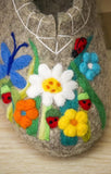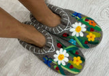 These gray slippers are made of 100% wool felt with embroidered floral and ladybird accents, perfect for women in size 38 (US). Crafted by Studia Valenok in the Russian Federation, these house shoes offer natural materials ideal for winter, fall, and spring seasons. The cozy woolen design and nature-themed embroidery combine comfort and style for a unique and charming footwear option.