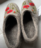 These slippers are made from 100% sheep wool with natural suede outsole and feature a round toe shape. The red poppy embroidered design adds a stylish touch to these handmade Russian valenki slippers. The natural wool fabric provides comfort and relief for pain in muscles and joints. These felted slippers provide dry warmth that no other shoe can provide: they are not hot in summer and not cold in winter. This is an excellent option for both a city apartment and a private house. These comfortable house shoes will be a wonderful gift for any occasion.